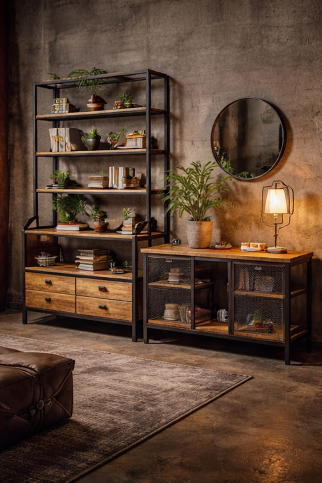Сдержанный индустриальный дизайн, сочетание металла и натурального дерева, функциональность и надёжность в каждой детали. Такая мебель подчёркивает статус пространства и идеально подходит для квартир, офисов и коммерческих интерьеров.